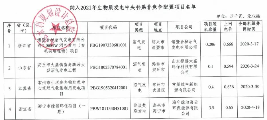 詳情如下:根據(jù)《國(guó)家發(fā)展改革委 財(cái)政部 國(guó)家能源局關(guān)于印發(fā)〈2021年生物質(zhì)發(fā)電項(xiàng)目建設(shè)工作方案〉的通知》(發(fā)改能源〔2021〕1190號(hào))、《國(guó)家可再生能源信息管理中心關(guān)于反饋納入2021年生物質(zhì)發(fā)電中央補(bǔ)貼非競(jìng)爭(zhēng)配置項(xiàng)目名單的函》(再生能信息函〔2022〕4號(hào))、《國(guó)家可再生能源信息管理中心關(guān)于...