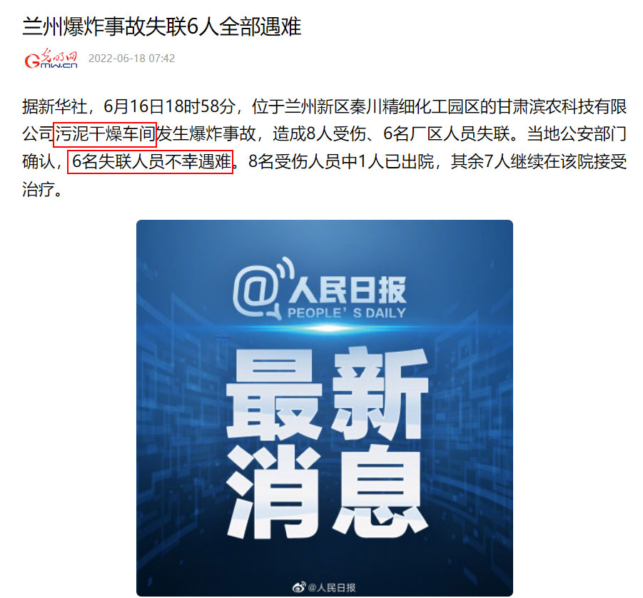 甘肅“6·16”污水處理爆炸事故又傳來(lái)新的消息。新消息總共有兩個(gè):1、此前失聯(lián)的6名人員,已確認(rèn)不幸遇難2、爆炸的源頭,指向了“污泥干燥車間”據(jù)“環(huán)保圈”統(tǒng)計(jì),今年上半年,環(huán)保行業(yè)已經(jīng)至少發(fā)生了13起事故,造成45人死亡,22人受傷。環(huán)保行業(yè)的安全問(wèn)題,亟需引起全行業(yè)重視。1上半年13起事故,45人...
