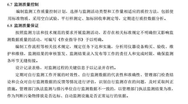 覆蓋全過(guò)程。按照排污單位開(kāi)展監(jiān)測(cè)活動(dòng)的整個(gè)過(guò)程,從制定方案、設(shè)置和維護(hù)監(jiān)測(cè)設(shè)施、開(kāi)展監(jiān)測(cè)、做好監(jiān)測(cè)質(zhì)量保證與質(zhì)量控制、記錄和保存監(jiān)測(cè)數(shù)據(jù)的全過(guò)程各環(huán)節(jié)進(jìn)行考慮。