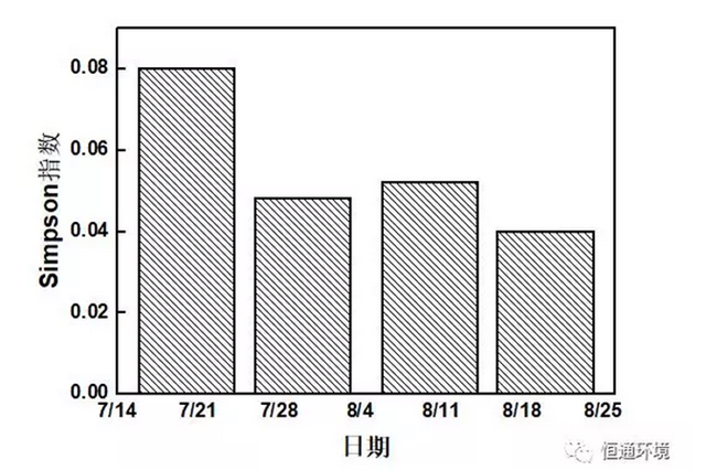 八干渠河道底泥原位修復(fù)前后Simpson指數(shù)變化