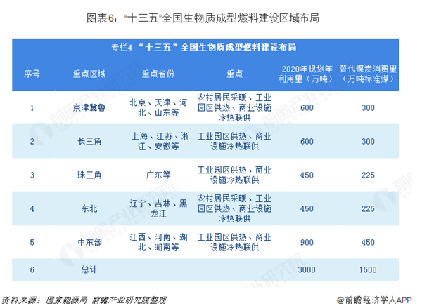 京津翼魯、長三角和中東部地區(qū)的生物質(zhì)成型燃料建設(shè)到2020年的規(guī)劃利用量分別達到600萬噸、600萬噸和900萬噸,工業(yè)園區(qū)供熱、商業(yè)設(shè)施冷熱聯(lián)供和農(nóng)村居民采暖是建設(shè)重點。