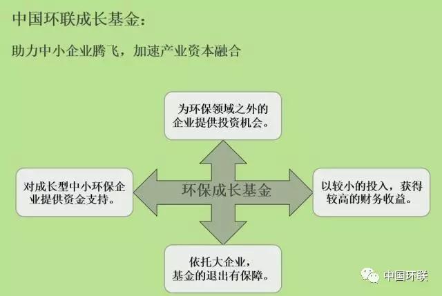 與此同時,為助力中小企業(yè)騰飛,加速產(chǎn)業(yè)資本融合,成立了 “中國環(huán)聯(lián)成長基金”,投資者首先面向中國環(huán)聯(lián)會員單位,也面向其它行業(yè)的企業(yè)和高凈值客戶,第一期規(guī)模暫定為5000萬元。 投資目標包括:環(huán)保行業(yè)的擬上市企業(yè)、高成長的細分行業(yè)龍頭、風(fēng)口上的創(chuàng)新型公司等。
