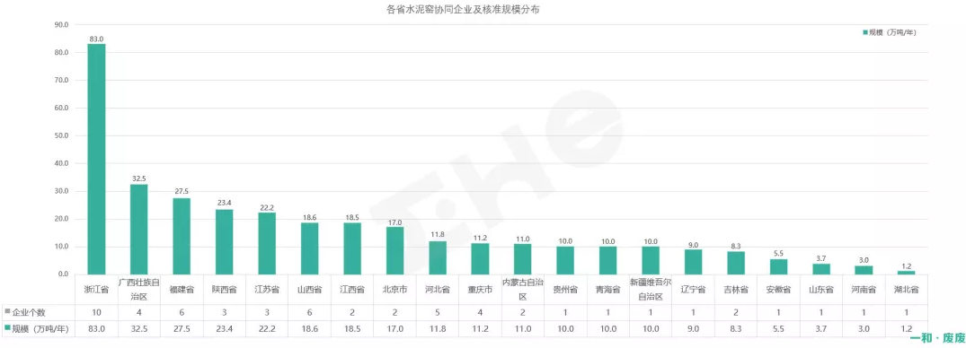 圖4:各省水泥窯協(xié)同處置企業(yè)數(shù)量及規(guī)模