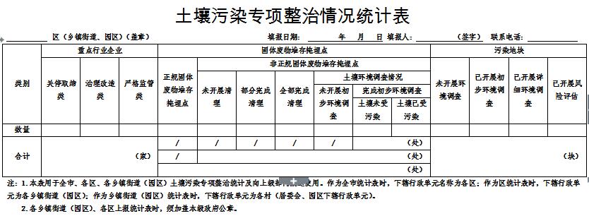 (三)嚴(yán)格執(zhí)行登記制度。各區(qū)要按照方案要求,按時完成各項工作,于6月30日前向市環(huán)保局報送土壤質(zhì)量與修復(fù)規(guī)劃;7月15日前向市環(huán)保局報送各類登記表(附件1);11月30日前向市環(huán)保局報送各類花名冊(附件2)和土壤污染專項整治情況統(tǒng)計表(附件3)。同時向市市容園林委報送涉及城鎮(zhèn)生活垃圾相關(guān)內(nèi)容,向市農(nóng)委報送涉及村莊內(nèi)生活垃圾相關(guān)內(nèi)容。