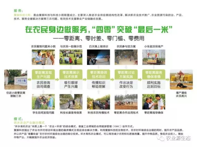 復(fù)振科技未來也在探索區(qū)域性環(huán)境解決方案平臺(tái)。平臺(tái)將與E20環(huán)境平臺(tái)、新農(nóng)村建設(shè)聯(lián)盟,在全國(guó)建立基于區(qū)域綜合環(huán)境/水流域環(huán)境的原產(chǎn)地農(nóng)業(yè)生態(tài)化能力。同時(shí)復(fù)振科技通過產(chǎn)業(yè)需求與地方政府聯(lián)合建立道地藥材、地理標(biāo)志產(chǎn)品、有機(jī)產(chǎn)品的原產(chǎn)地環(huán)境綜合支撐能力,提供基于產(chǎn)業(yè)需求的生態(tài)環(huán)境規(guī)劃與項(xiàng)目實(shí)施。未來復(fù)振科技將建立基于環(huán)水農(nóng)業(yè)的農(nóng)業(yè)+環(huán)保增量PPP模式;借鑒工業(yè)領(lǐng)域的合同能源管理(EMC)運(yùn)作模式,復(fù)振科技提出了農(nóng)業(yè)與農(nóng)村綜合環(huán)境治理的融資模式及相應(yīng)綜合解決方案,同時(shí)企業(yè)也將吸引更多合作伙伴合作共同推進(jìn)平臺(tái)的發(fā)展。