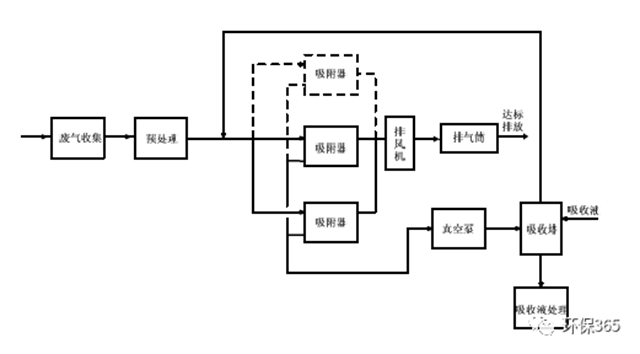 當(dāng)廢氣中的有機(jī)物具有回收價(jià)值時(shí),可根據(jù)情況選擇采用水蒸氣再生、熱氣流(空氣或惰性氣體)再生或降壓解吸再生工藝。脫附后產(chǎn)生的高濃度氣體可根據(jù)情況選擇采用降溫冷凝或液體吸收工藝對(duì)有機(jī)物進(jìn)行回收。