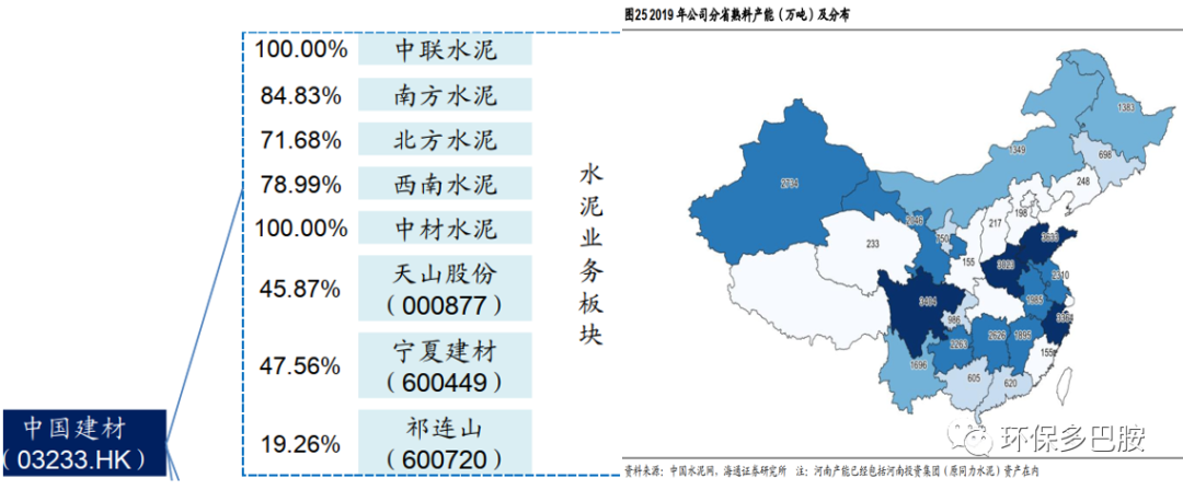 2019年海螺創(chuàng)業(yè)與水泥產(chǎn)能宇宙第一的中國(guó)建材(2019年公司水泥產(chǎn)能5.2億噸)成立合資公司:海建香港(股份各占50%,由海螺創(chuàng)業(yè)并表) ,并通過海建香港成立安徽海中環(huán)保開展業(yè)務(wù),全權(quán)負(fù)責(zé)投資、經(jīng)營(yíng)及管理中國(guó)建材從事水泥相關(guān)業(yè)務(wù)的若干附屬公司現(xiàn)有及未來的固廢處置業(yè)務(wù),預(yù)計(jì)規(guī)劃處置總產(chǎn)能不少于 300 萬(wàn)噸/年。