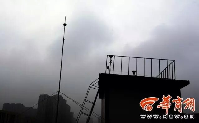 △設(shè)在樓頂上的空氣采樣器