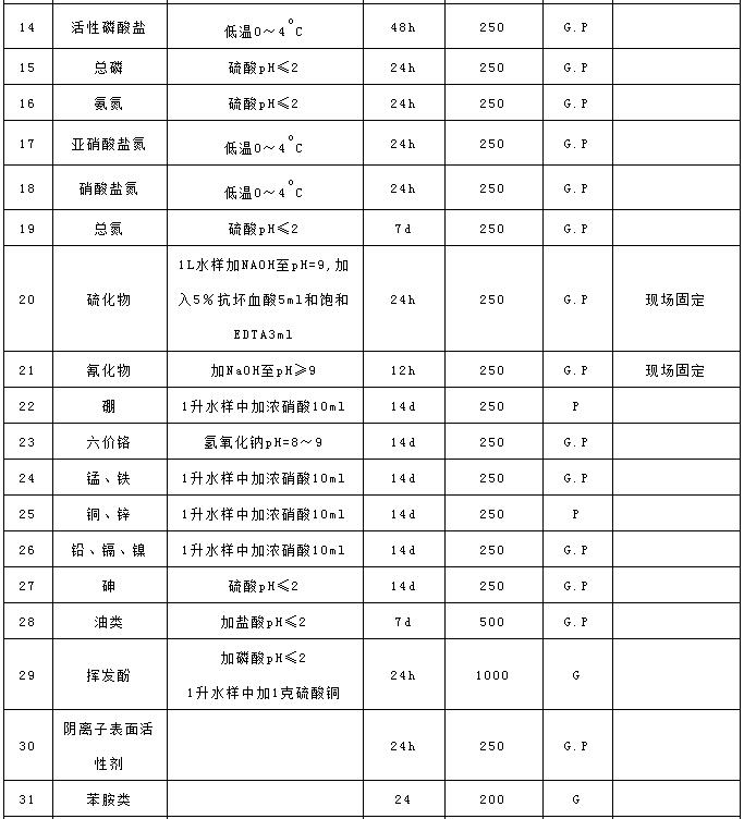 各種項(xiàng)目水樣的不同保存條件見(jiàn)附表。
