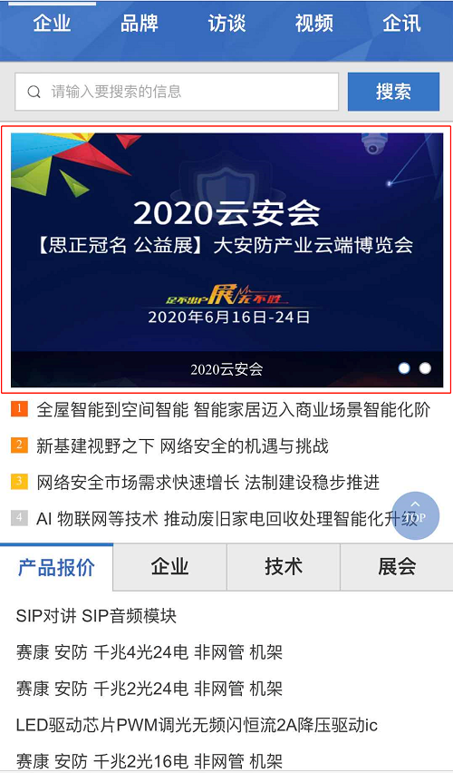 在線展會(huì)。利用互聯(lián)網(wǎng)、利用大數(shù)據(jù),把線下安防展會(huì)搬到線上來(lái)。不用你滿世界飛,不用穿越N個(gè)展館,不用擔(dān)心通行證,不用排什么行程表,只要你來(lái),我(←點(diǎn)擊進(jìn)入2020云安會(huì)展館)就在!