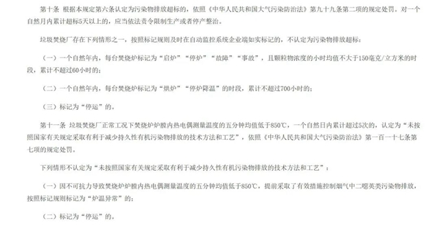 圖為《生活垃圾焚燒發(fā)電廠自動(dòng)監(jiān)測(cè)數(shù)據(jù)應(yīng)用管理規(guī)定》第十條、第十一條規(guī)定