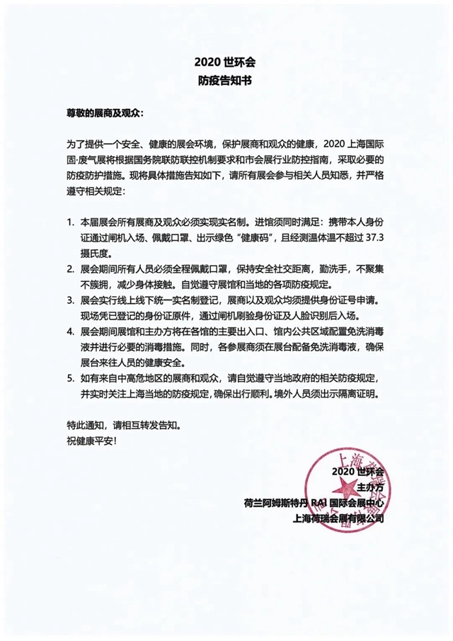作為環(huán)保業(yè)界的年度饕餮盛宴,2020世環(huán)會將于2020年8月31日-9月2日在上海國家會展中心(虹橋)精彩上演。2020世環(huán)會擁有26萬平米展示面積,涵蓋了水處理、泵管閥、除塵及脫硫脫硝、固廢處置、環(huán)境綜合治理、智慧環(huán)保、環(huán)境監(jiān)測等環(huán)境污染處置完整產(chǎn)業(yè)鏈,不但匯聚了超過23個國家和地區(qū)的3,900家參展企業(yè),更將吸引超過115個國家和地區(qū)的近12萬名專業(yè)觀眾。