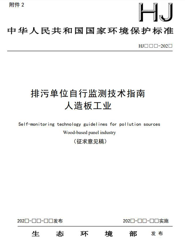 近日,生態(tài)環(huán)境部發(fā)布《排污單位自行監(jiān)測技術指南 人造板工業(yè)(征求意見稿)》,為落實環(huán)境保護法的有關要求,進一步規(guī)范排污單位自行監(jiān)測工作,本標準適用于人造板工業(yè)排污單位在生產(chǎn)運行階段對其排放的水、氣污染物,噪聲以 及對其周邊環(huán)境質量影響開展的監(jiān)測。