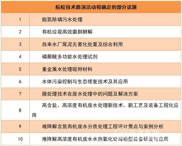 意識到這一點,為使業(yè)內人士明確當下廢水零排放相關技術的研究方向,2020院校技術路演活動擬定了10大議題,將圍繞廢水零排放進行了廣泛的交流和探討,為水處理高質量轉型升級創(chuàng)造有利條件。具體如下: