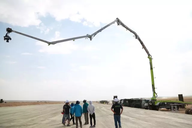作為此次全球直播任務(wù)唯一大型裝備專供企業(yè),中聯(lián)重科共調(diào)派了95噸及以上的大噸位汽車起重機(jī),4.0泵車,消防云梯車等10余臺(tái)高端設(shè)備助力央視拍攝。據(jù)中聯(lián)重科該項(xiàng)目技術(shù)負(fù)責(zé)人趙建陽介紹,與以往的閱兵儀式不同,此次沙場(chǎng)閱兵地處塞北大漠之中,光照強(qiáng)烈,常年風(fēng)沙大,對(duì)設(shè)備和現(xiàn)場(chǎng)工作人員而言都是極大的考驗(yàn)。