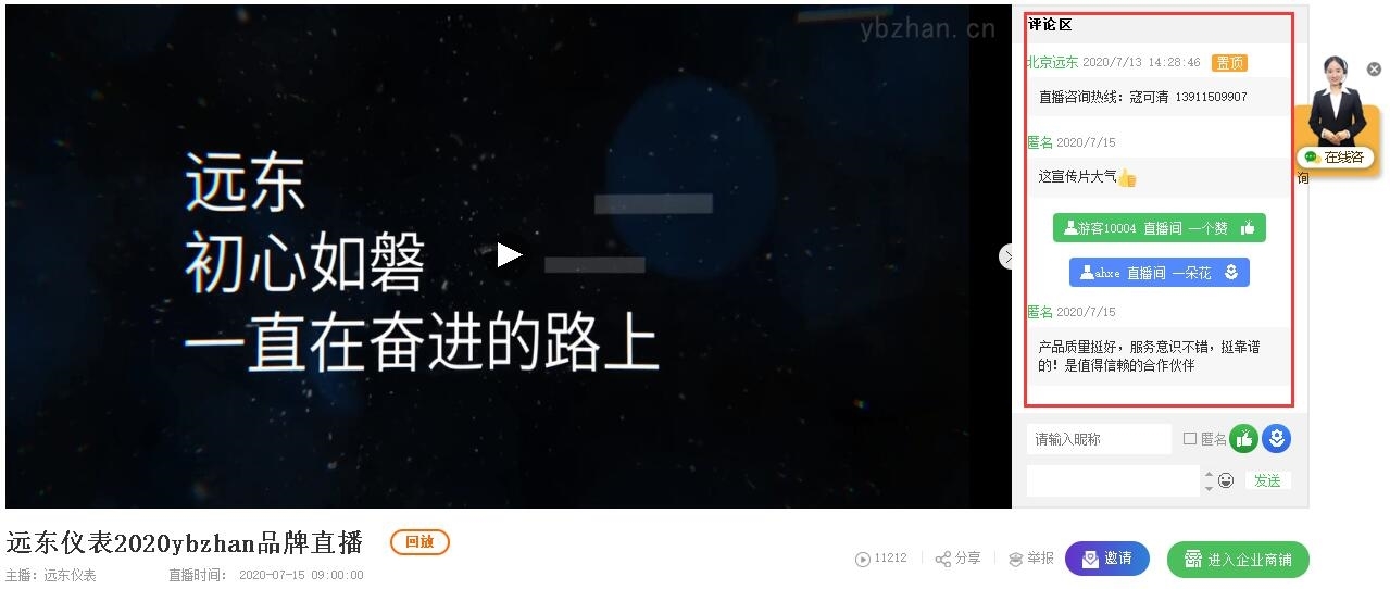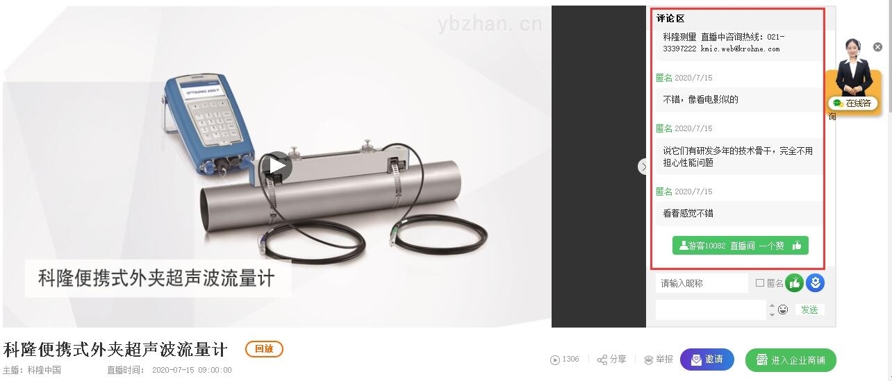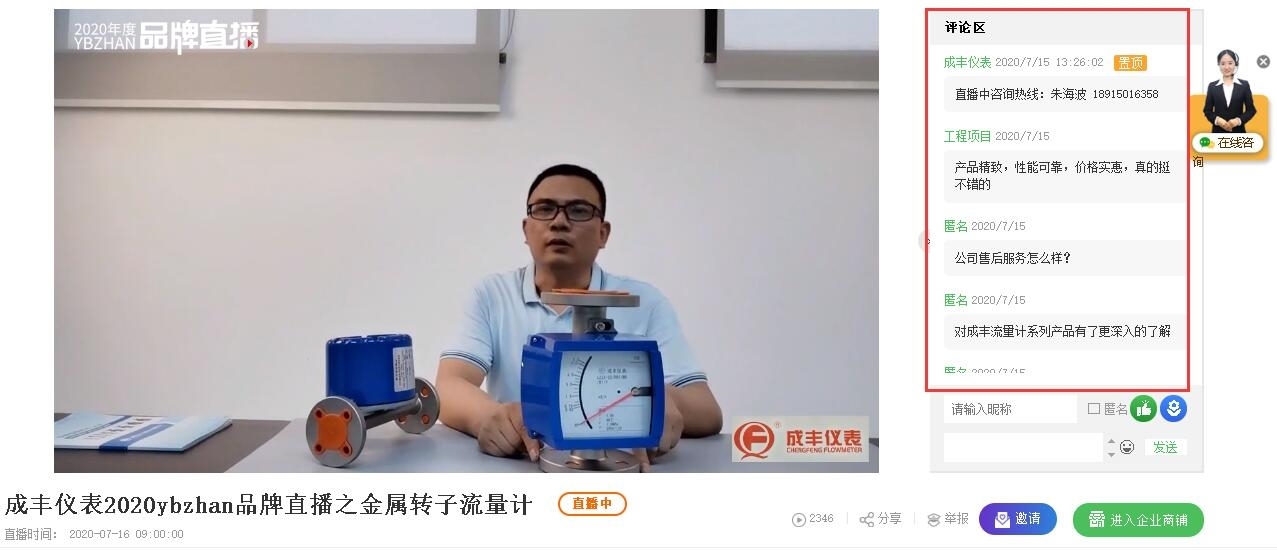 自7月13日“2020年度YBZHAN品牌直播”公益活動之流量儀表品牌專場直播開播以來,各品牌商輪番上陣,為大家奉上了一場場精彩的直播“盛宴”。品牌故事、產(chǎn)品介紹、技術(shù)講解、項目案例分享等在這里你都能看到……