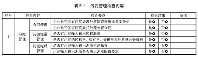 污泥管理檢查內(nèi)容見表B.1。