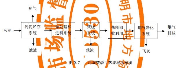 污泥焚燒處理工藝流程示意見圖D.7。