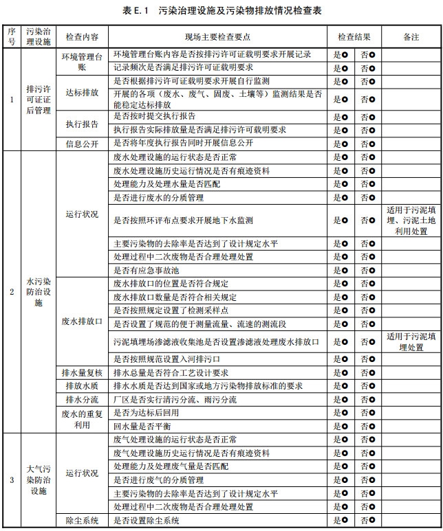 污染治理設(shè)施及污染物排放情況檢查表見表E.1。