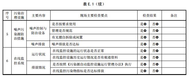 5.4.2.2 污染物排放檢查細(xì)目參見附錄 E,重點(diǎn)檢查的內(nèi)容包括但不限于下列方面: