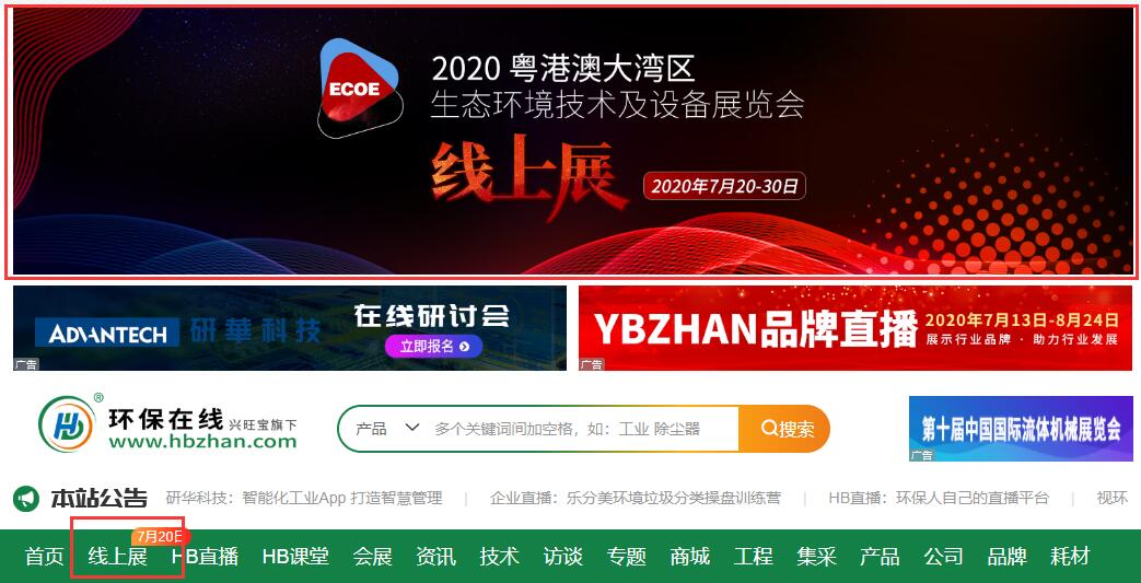 7月20日,打破當下環(huán)保展會“空窗期”的【2020粵港澳大灣區(qū)生態(tài)環(huán)境技術(shù)及設(shè)備展覽會—線上展】(←點擊進入在線展館)就要正式開展了!小伙伴們,都準備好了嗎?