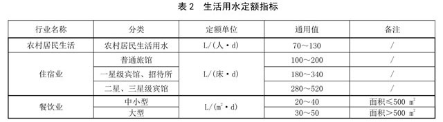 主要參考DB36/T 419來確定用水量,由于農(nóng)村生活用水量因區(qū)域、生活習(xí)慣差異等因素波動較大,九江市農(nóng)村地區(qū)生活用水量可按表2選用。