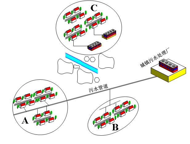 針對村莊人口數(shù)量較多、污水排放量較大、分布較為集中的情況,對一定區(qū)域內(nèi)產(chǎn)生的生活污水通過較大范圍的管網(wǎng)進(jìn)行收集,輸送至指定地點(diǎn),并進(jìn)行處理的方式。