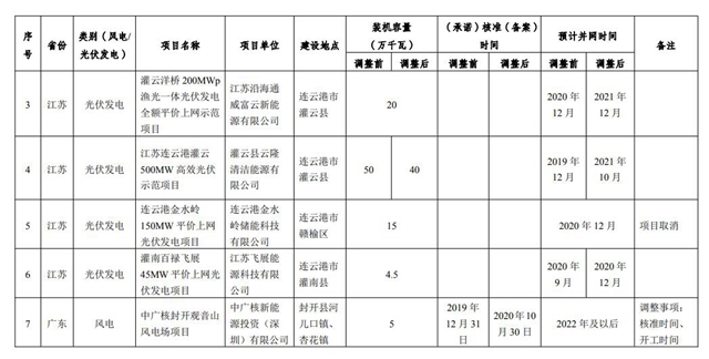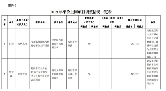 3.2019年平價(jià)上網(wǎng)項(xiàng)目信息調(diào)整情況一覽表