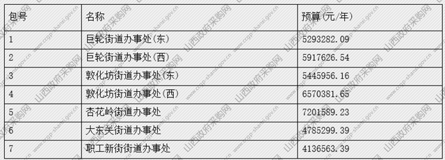 項(xiàng)目一分為了7個(gè)包,預(yù)算每年3935.07萬(wàn)元。服務(wù)內(nèi)容包括城市倒庫(kù)清掃保潔、小廣告清理和果皮箱清掏保潔、城市綠地保潔、無(wú)物業(yè)樓院保潔、生活垃圾分類收集、環(huán)衛(wèi)應(yīng)急保障等。開(kāi)標(biāo)時(shí)間在8月31日9點(diǎn)。