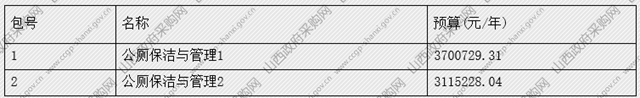項(xiàng)目五分2個(gè)包,投標(biāo)人需負(fù)責(zé)公廁管理及維護(hù)和公廁應(yīng)急保障等,每年預(yù)算681.60萬(wàn)元。本項(xiàng)目無(wú)特定資格要求,開(kāi)標(biāo)時(shí)間定為9月9日。