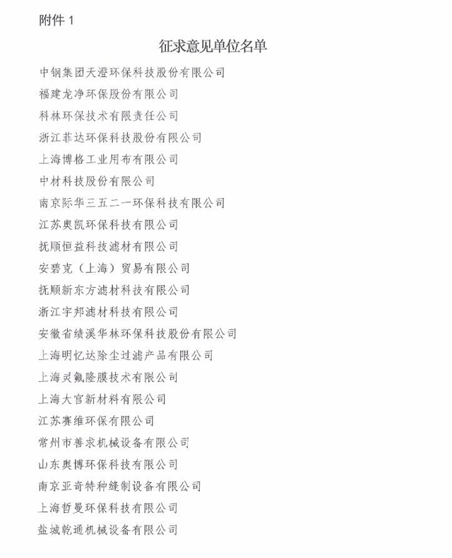 2.《袋式除塵器 濾袋技術(shù)要求(征求意見(jiàn)稿)》