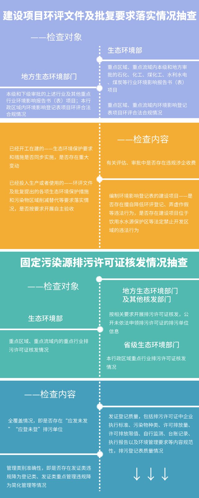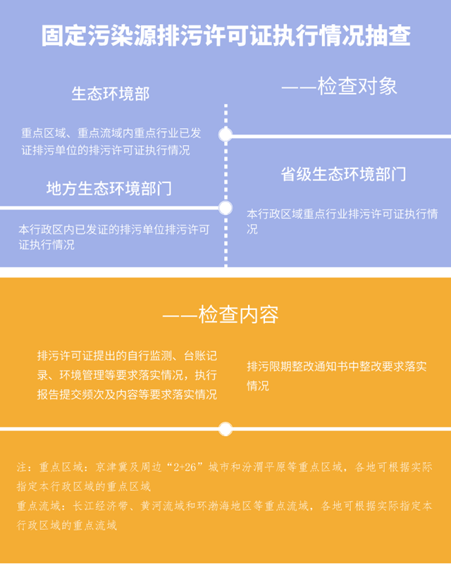 其中建設(shè)項(xiàng)目環(huán)評文件及批復(fù)要求落實(shí)情況抽查和固定污染源排污許可證執(zhí)行情況抽查都提到了,納入“雙隨機(jī)、一公開”日常執(zhí)法監(jiān)管。