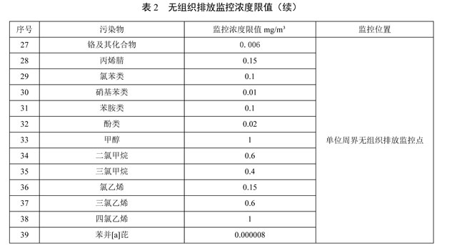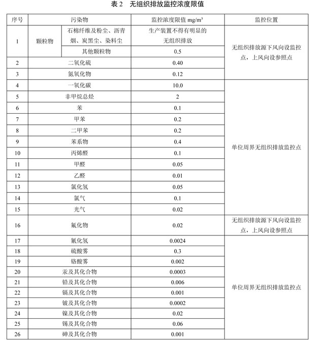 4.1.2 固定污染源無(wú)組織排放監(jiān)控濃度限值執(zhí)行表2的規(guī)定。新建污染源自本標(biāo)準(zhǔn)實(shí)施之日起執(zhí)行,現(xiàn)有污染源自2022年7月1日起執(zhí)行。