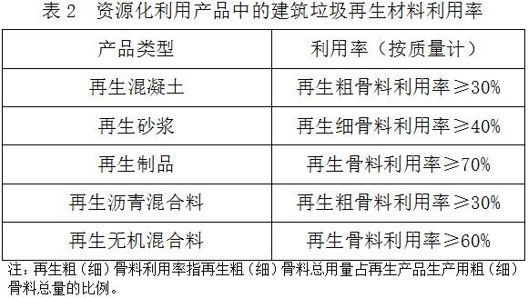 (四)企業(yè)生產(chǎn)資源化利用產(chǎn)品,其建筑垃圾再生材料的利用率應(yīng)符合表2的規(guī)定。