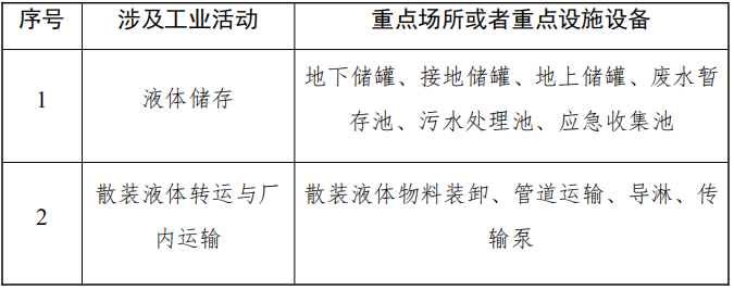 表2有潛在土壤污染隱患的重點場所或者重點設(shè)施設(shè)備