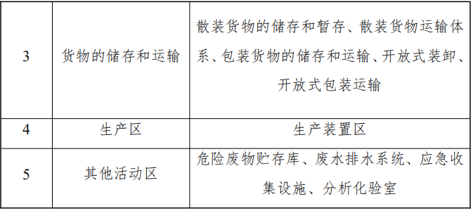 可參考表2,識別涉及有毒有害物質(zhì)的重點場所或者重點設(shè)施設(shè)備,編制企業(yè)土壤污染隱患重點場所、重點設(shè)施設(shè)備清單。若鄰近的多個重點設(shè)施設(shè)備防滲漏、流失、揚散的要求相同,可合并為一個重點場所。