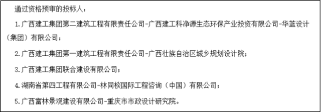 采用建設(shè)-運(yùn)營-移交(BOT)的方式實(shí)施,合作期限20年,含建設(shè)1年。通過資格預(yù)審的企業(yè)如下: