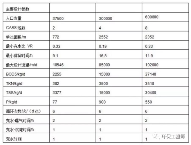 CASS工藝處理不同規(guī)模城市污水時的主要設計參數(shù)