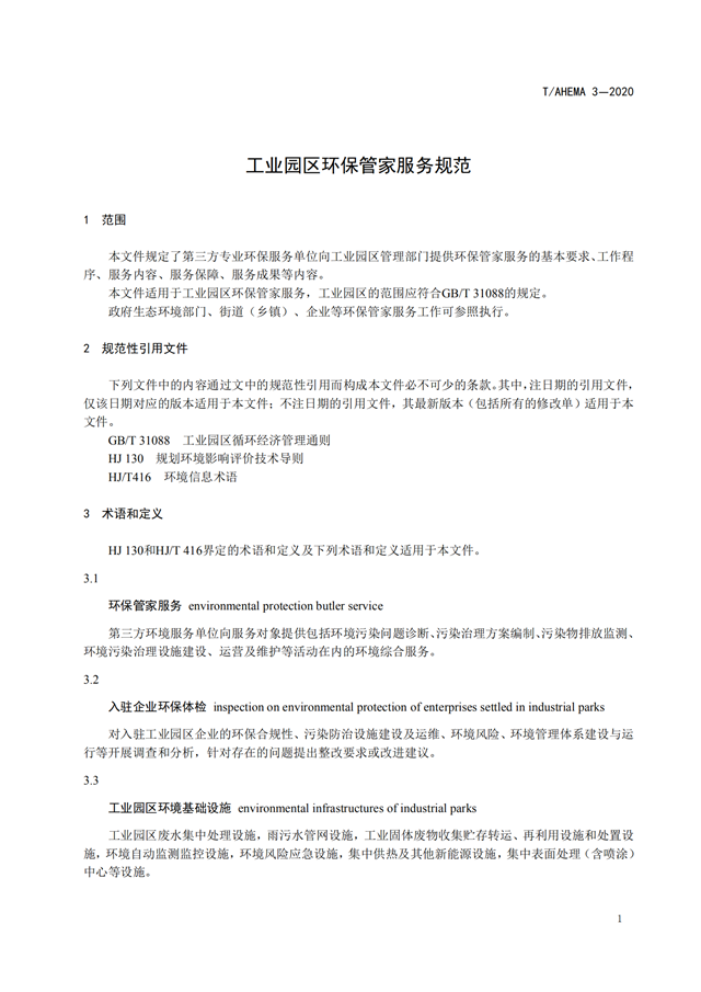 相關資料下載:T AHEMA 3-2020 工業(yè)園區(qū)環(huán)保管家服務規(guī)范.pdf