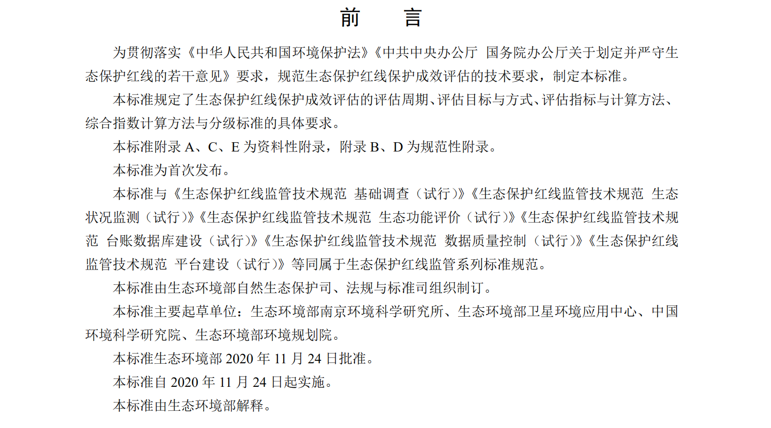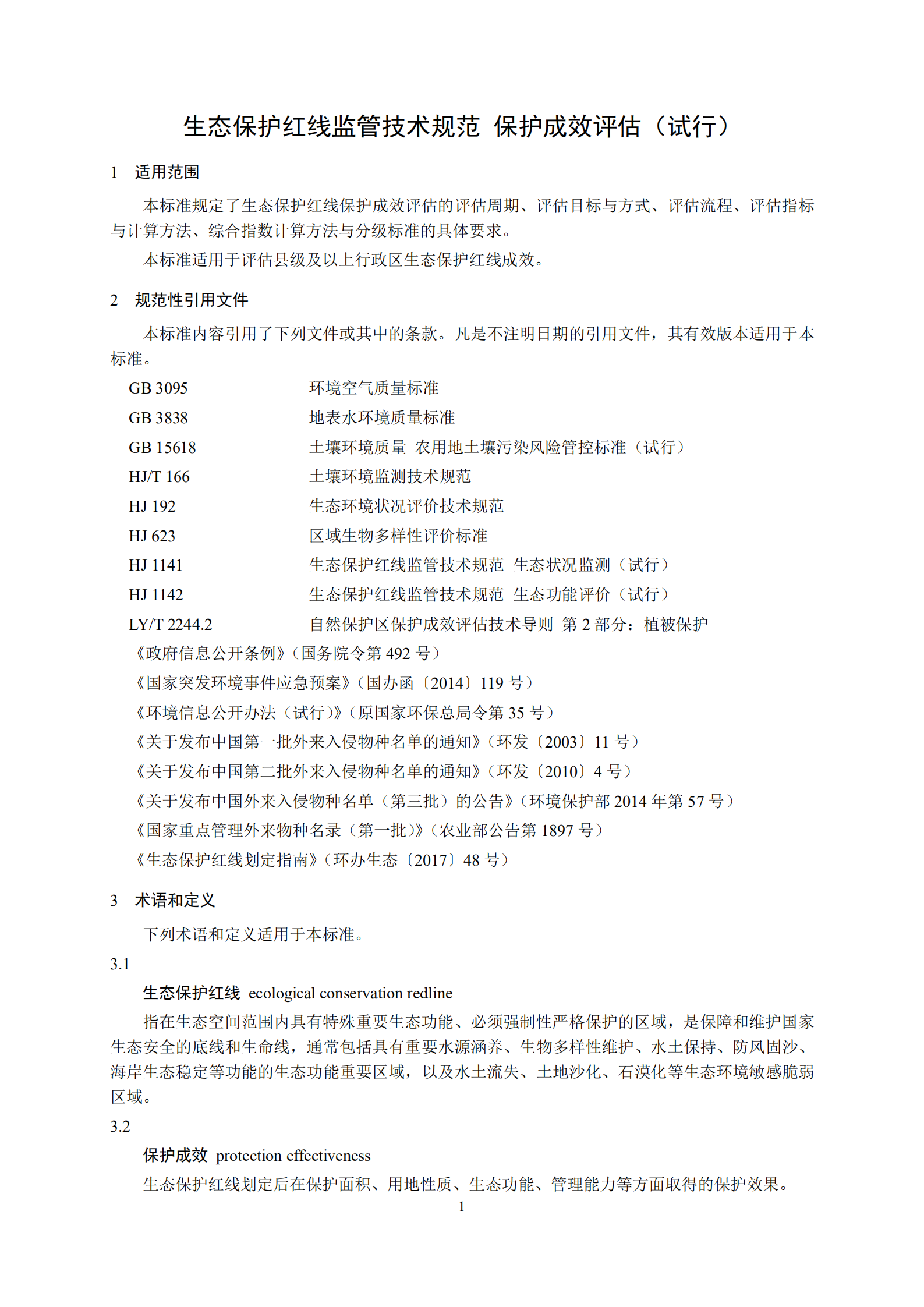 生態(tài)保護紅線監(jiān)管技術(shù)規(guī)范保護成效評估(試行)