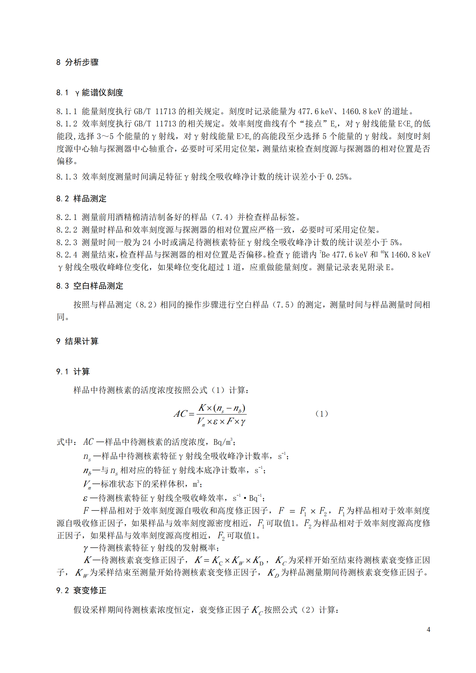 本標(biāo)準(zhǔn)適用于輻射環(huán)境常規(guī)監(jiān)測,環(huán)境空氣氣溶膠中γ放射性核素的測定。