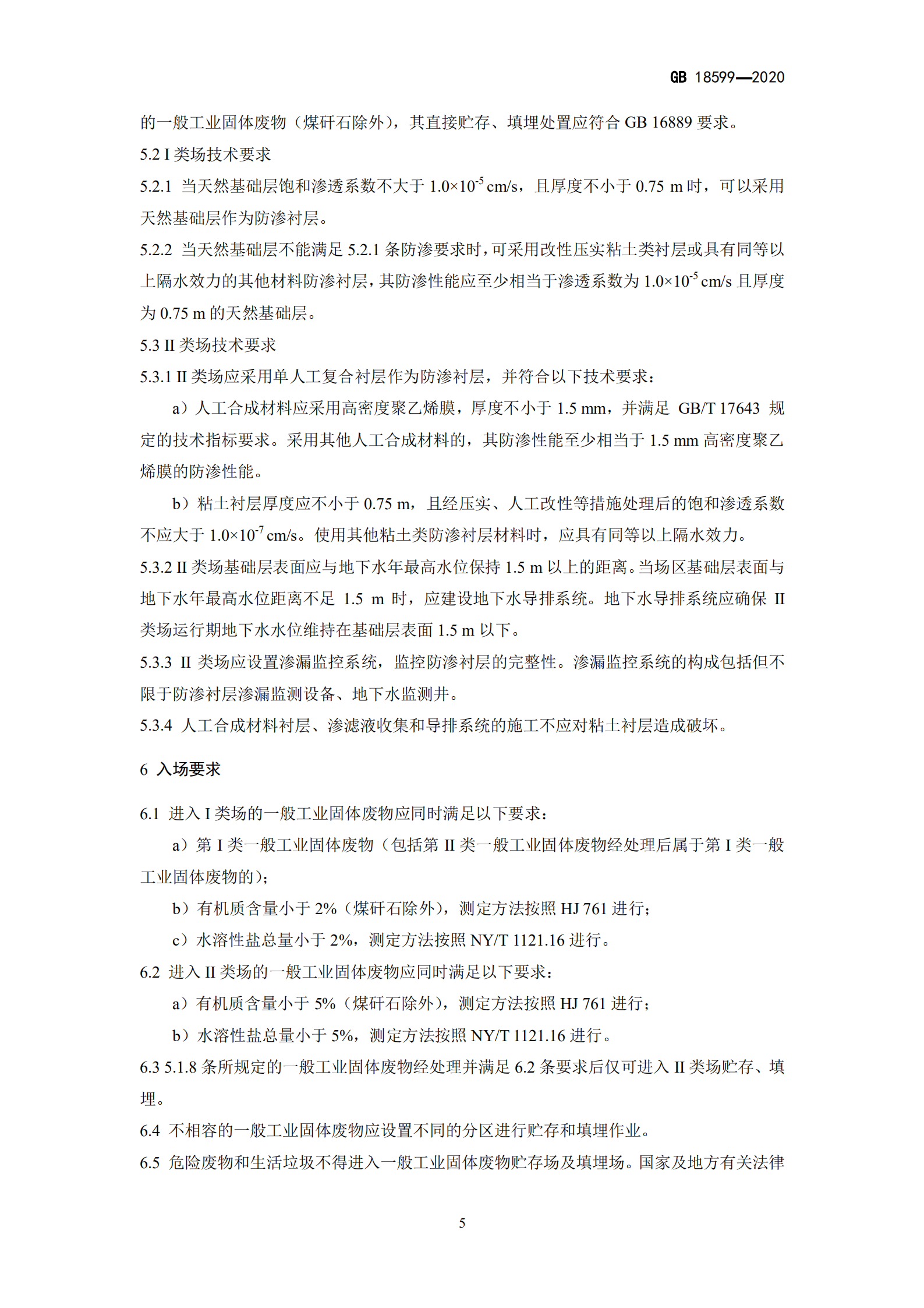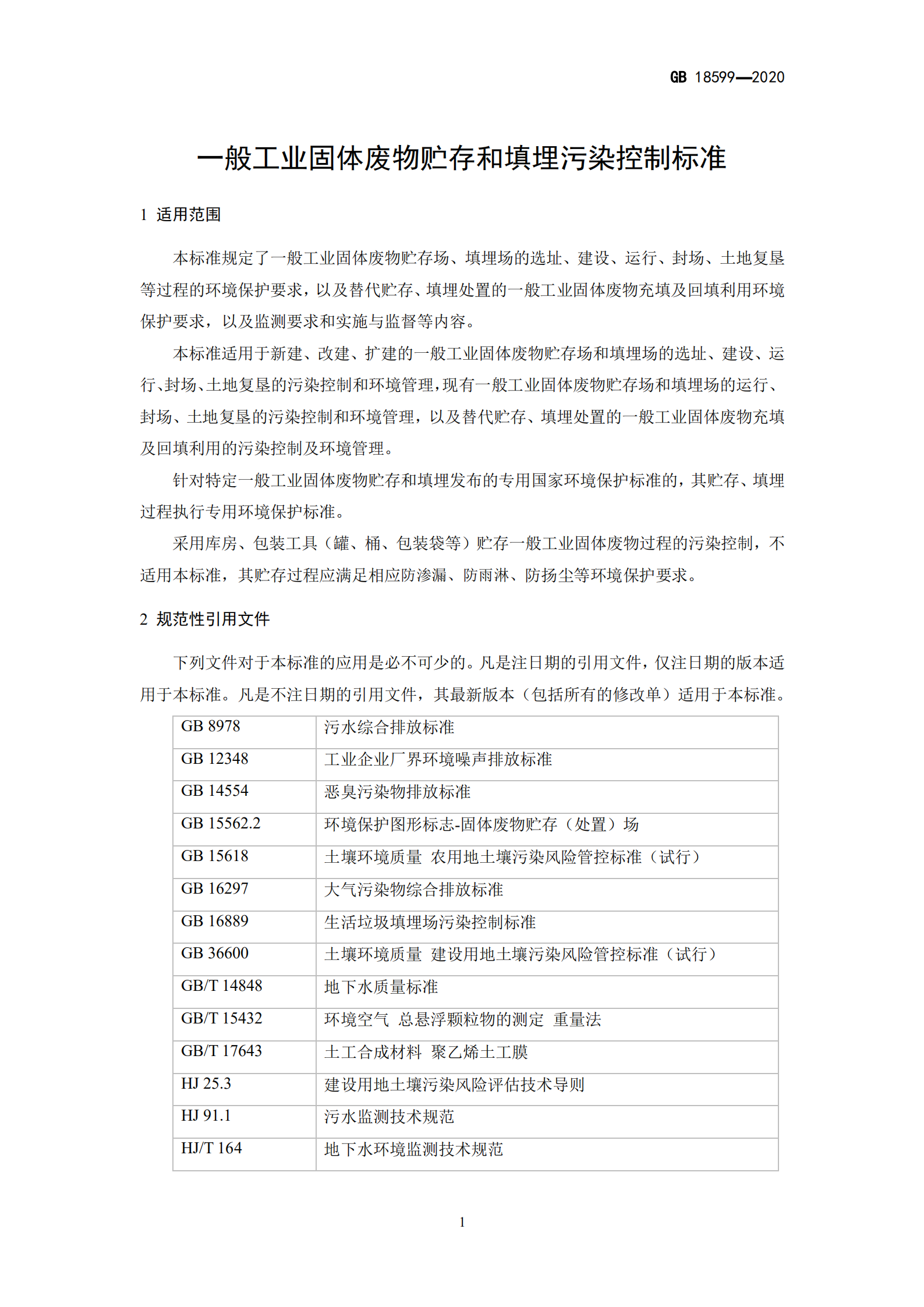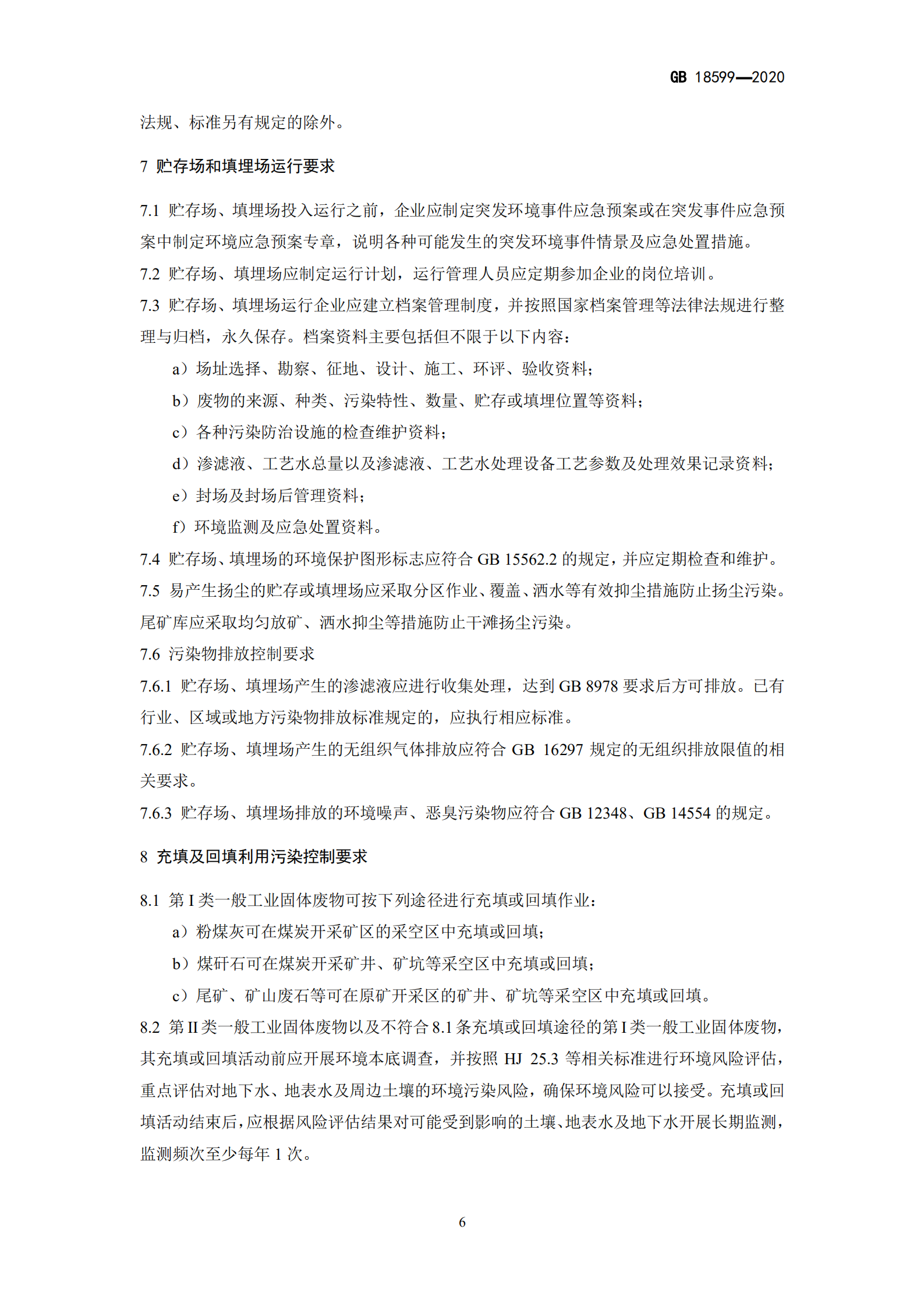 一般工業(yè)固體廢物貯存和填埋 污染控制標準