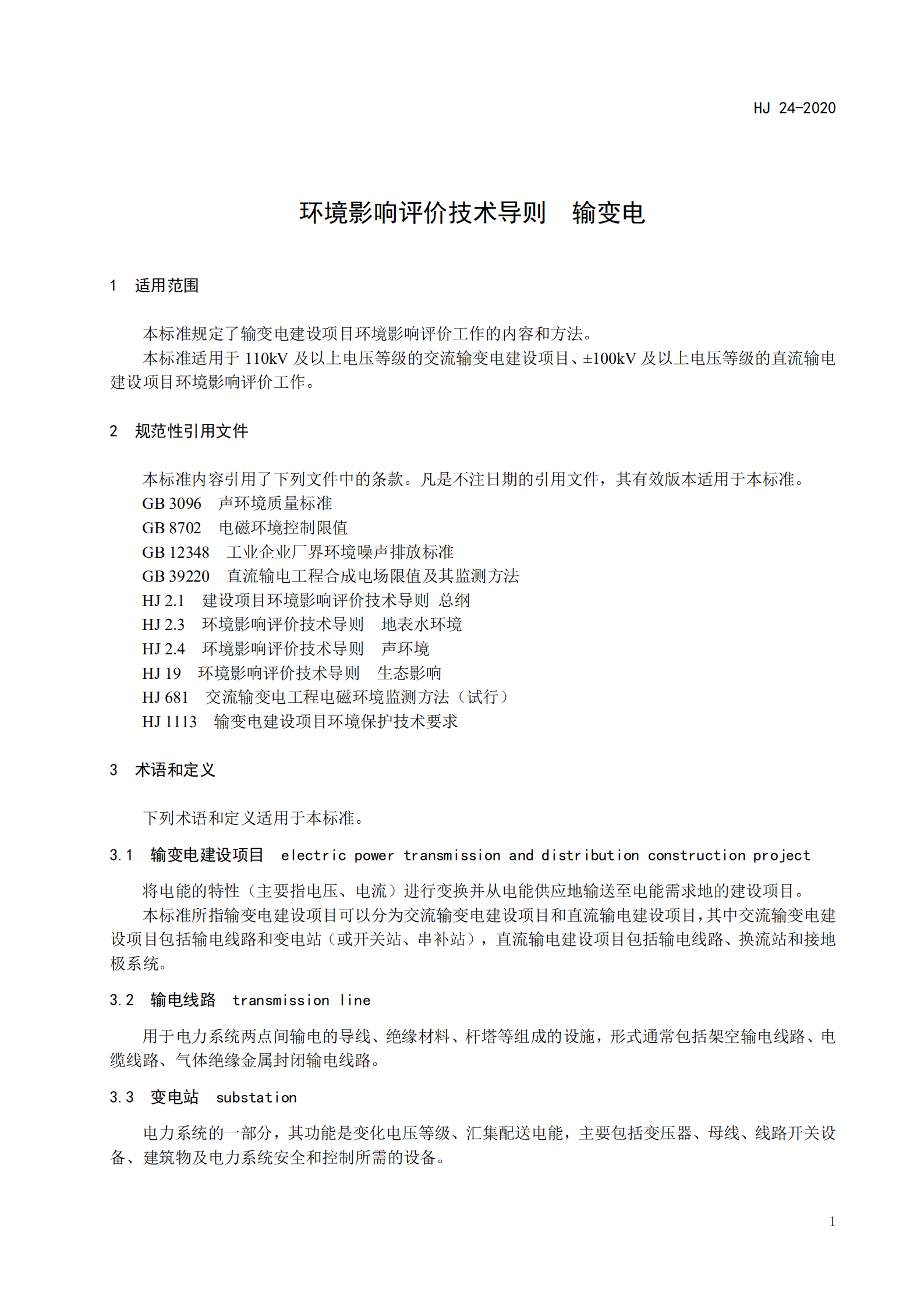 本標準規(guī)定了輸變電建設(shè)項目環(huán)境影響評價的內(nèi)容、方法等技術(shù)要求。 本標準是對《環(huán)境影響評價技術(shù)導(dǎo)則 輸變電工程》(HJ 24-2014)的修訂。