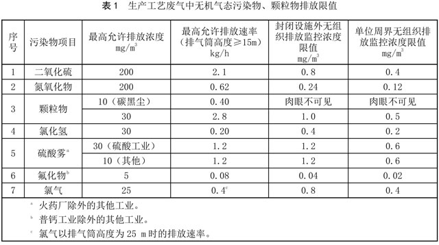 5.2.1 生產工藝廢氣中無機氣態(tài)污染物、顆粒物按表1的規(guī)定執(zhí)行。