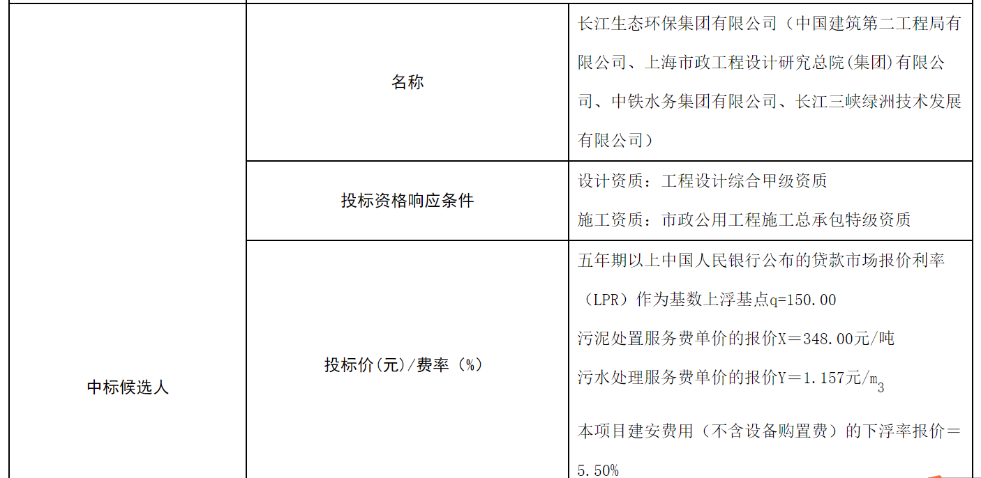 馬鞍山市長江大保護(hù)(一期)特許經(jīng)營項(xiàng)目發(fā)布中標(biāo)候選人公示,中標(biāo)候選人為長江生態(tài)環(huán)保集團(tuán)有限公司(中國建筑第二工程局有限公司、上海市政工程設(shè)計(jì)研究總院(集團(tuán))有限公司、中鐵水務(wù)集團(tuán)有限公司、長江三峽綠洲技術(shù)發(fā)展有限公司)。