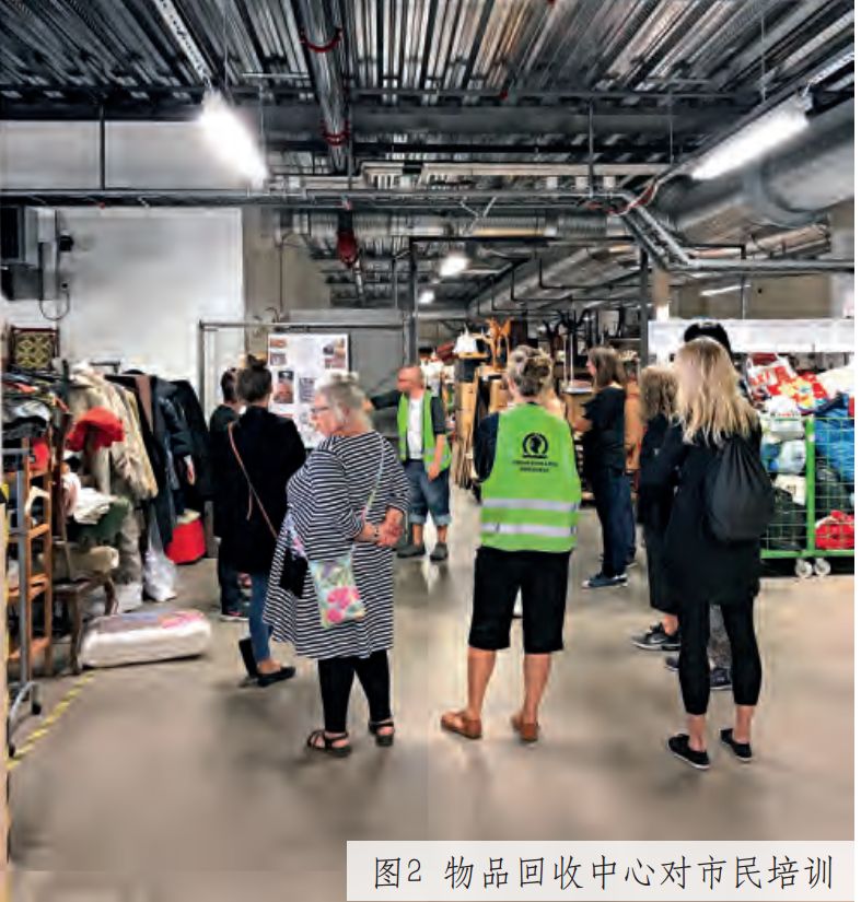 課堂上,老師會專門講解垃圾分類、如何正確投放垃圾等知識,做到“垃圾分類回收從娃娃抓起”。在社區(qū)、二手物品回收中心(圖 2)以及垃圾、污水處理廠等地,市民們可近距離地參觀,開展環(huán)保和垃圾分類知識教育等活動。