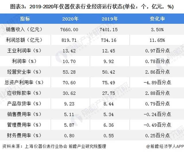 其中2020年儀器儀表行業(yè)實(shí)現(xiàn)銷售收入7660.00億元,同比增長3.50%;實(shí)現(xiàn)利潤總額734.16億元,同比增長11.65%。總體來看,儀器儀表行業(yè)運(yùn)行情況較為穩(wěn)定。