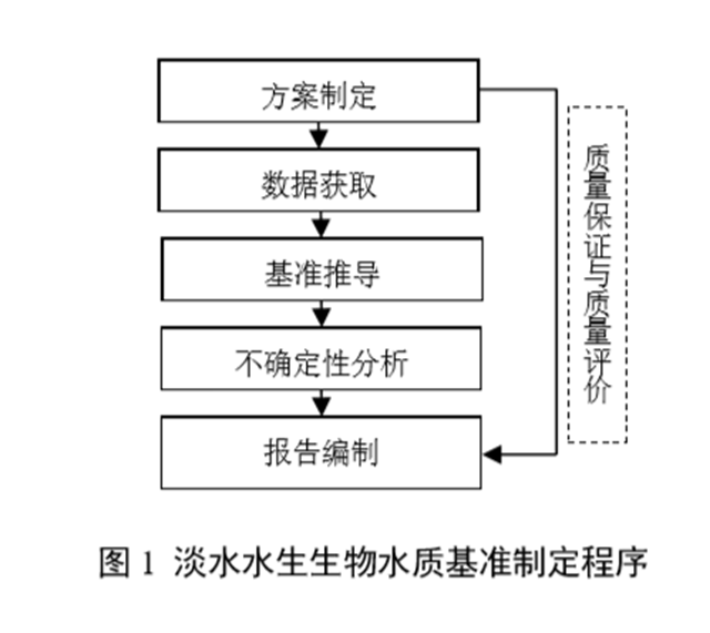 淡水水生生物水質基準的制定包括方案制定、數(shù)據(jù)獲取、基準推導、不確定性分析、報告編制和質量保證與質量評價 6 個步驟,制定程序見圖 1。