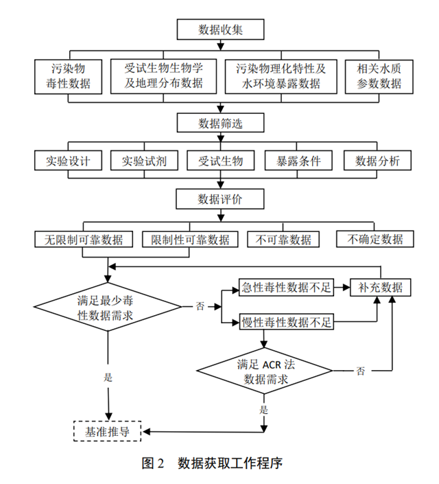 根據(jù)目標污染物的效應特征等,確定基準制定相關數(shù)據(jù)的來源、檢索方案、數(shù)據(jù)篩選與評價原則,以及開展補充生物毒性實驗或實施現(xiàn)場調查的必要性和要求。