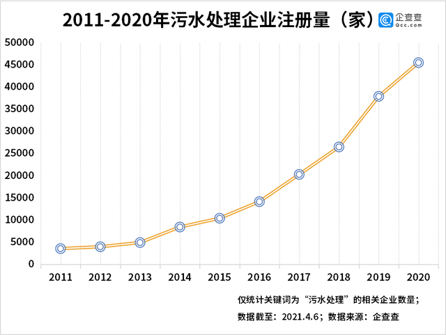 原標(biāo)題:企查查數(shù)據(jù):2020年我國(guó)污水處理相關(guān)企業(yè)注冊(cè)量同比增長(zhǎng)20%